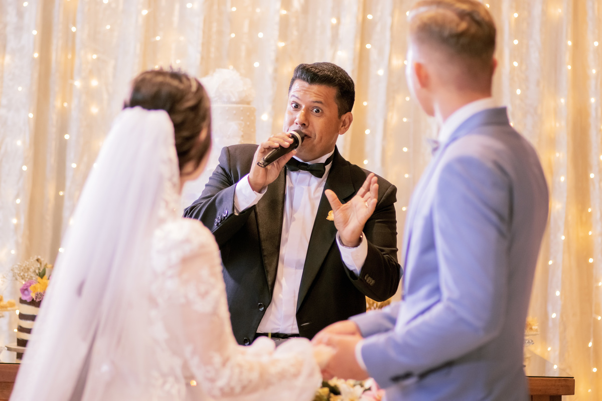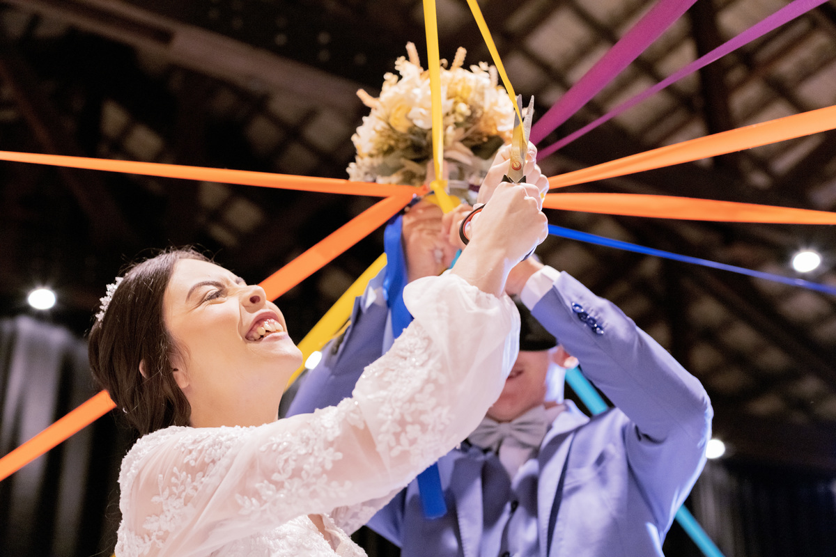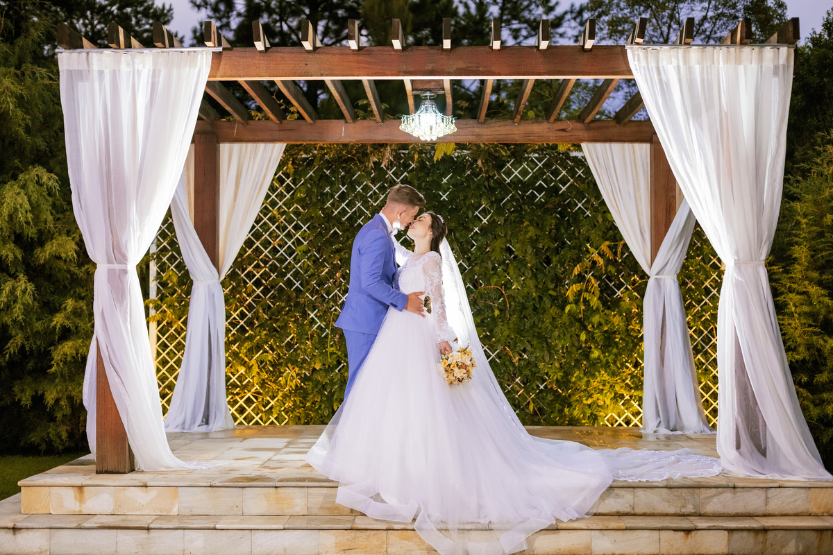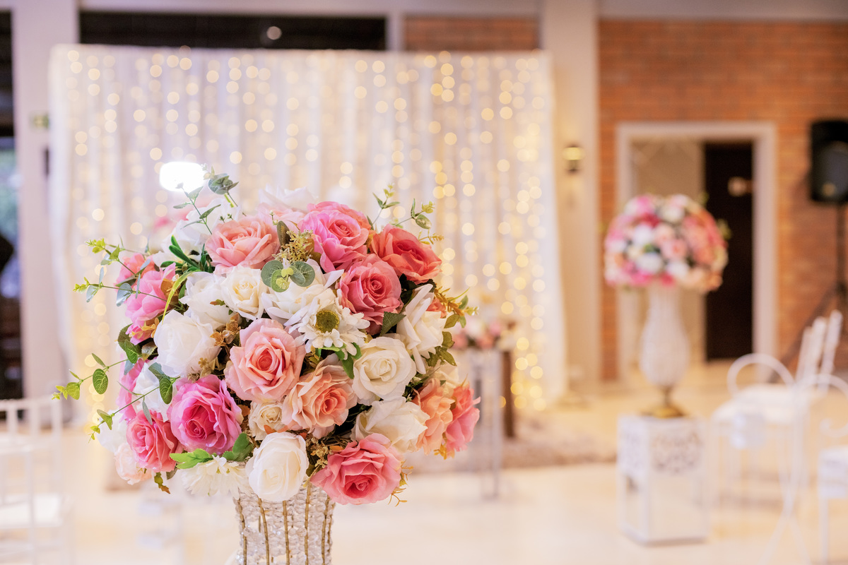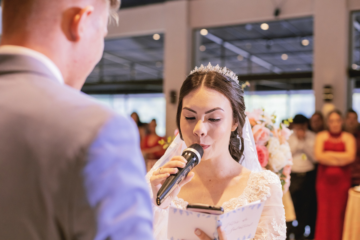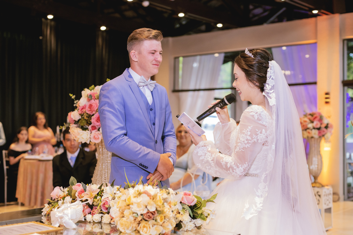 No caminho para o local da cerimônia, começou a chover e a Helô sempre sonhou em se casar ao ar livre. Toda a decoração foi montada no local ao ar livre, porém como não parou mais de chover, em conversa com o noivo juntamente com a equipe de cerimonial, celebrante e fotógrafa foi decidido optar pelo plano B, trazer a decoração para dentro do salão e realizar a cerimônia no interno. Mesmo não saindo tudo 100% como planejado, foi incrível demais. Emocionante a beça!