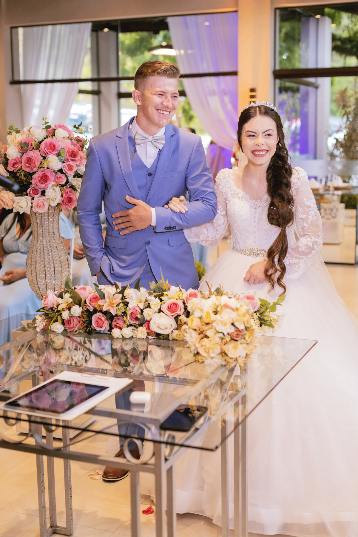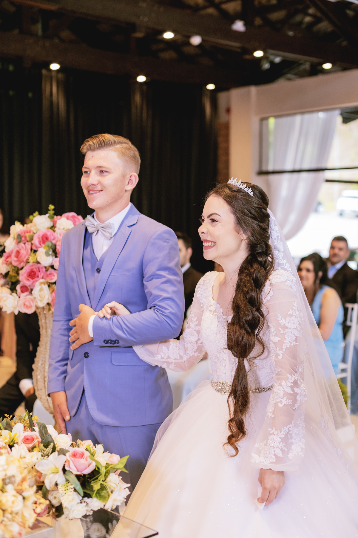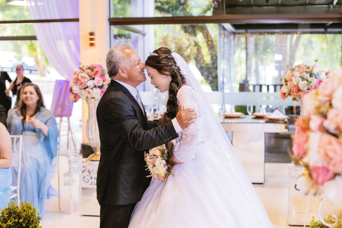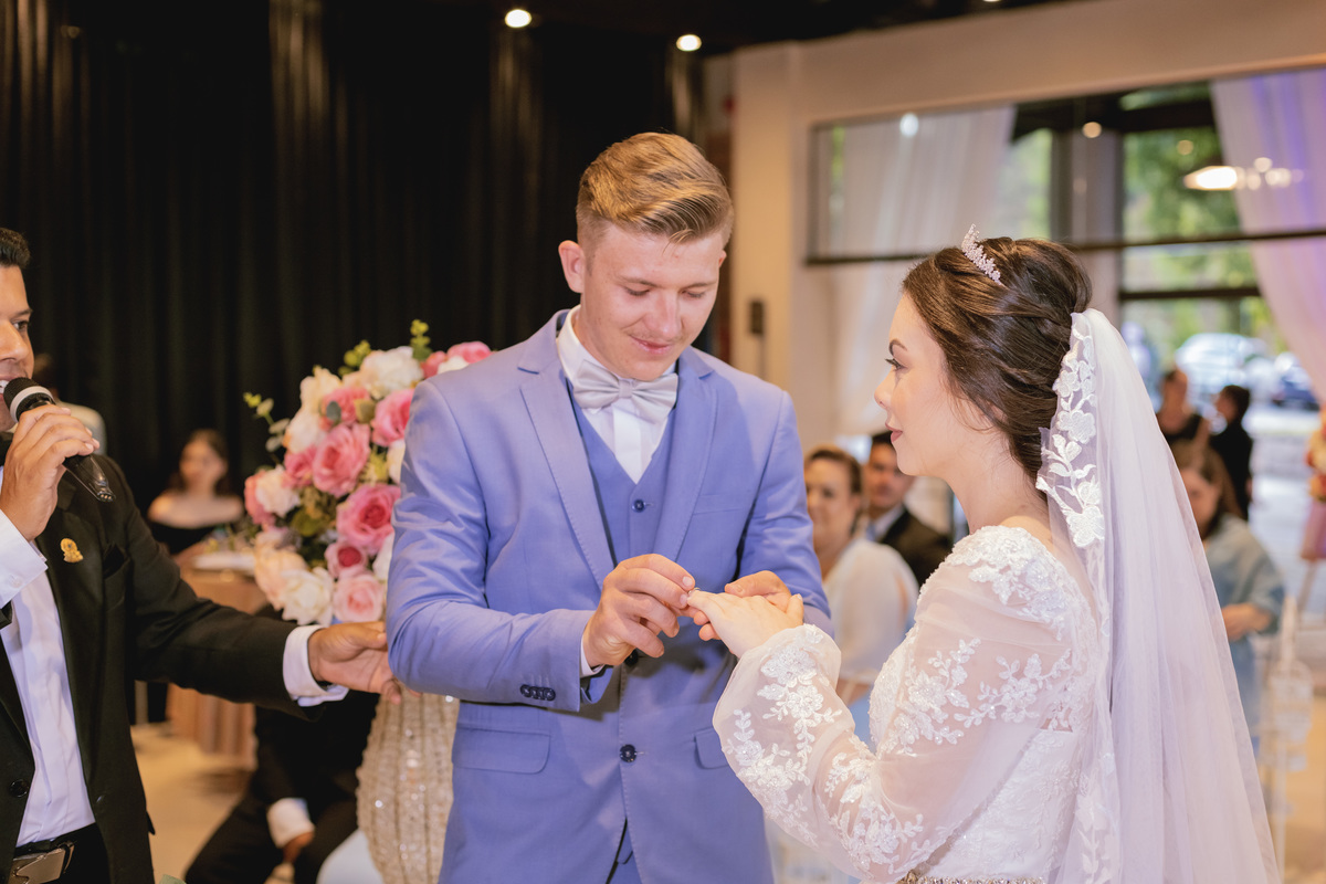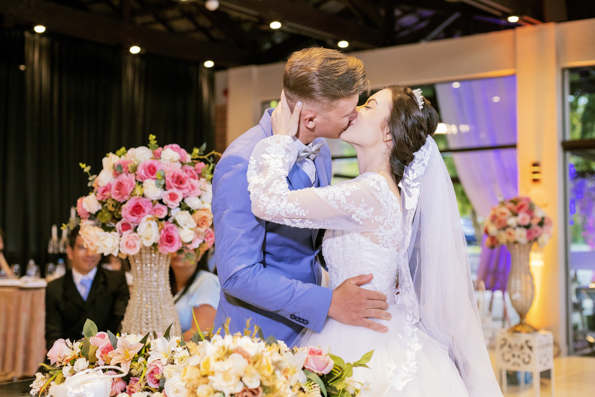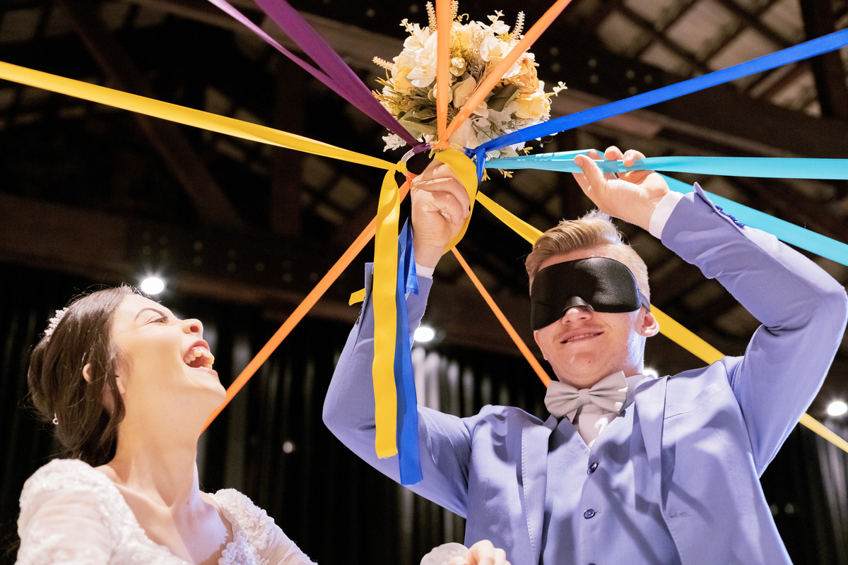 No caminho para o local da cerimônia, começou a chover e a Helô sempre sonhou em se casar ao ar livre. Toda a decoração foi montada no local ao ar livre, porém como não parou mais de chover, em conversa com o noivo juntamente com a equipe de cerimonial, celebrante e fotógrafa foi decidido optar pelo plano B, trazer a decoração para dentro do salão e realizar a cerimônia no interno. Mesmo não saindo tudo 100% como planejado, foi incrível demais. Emocionante a beça!