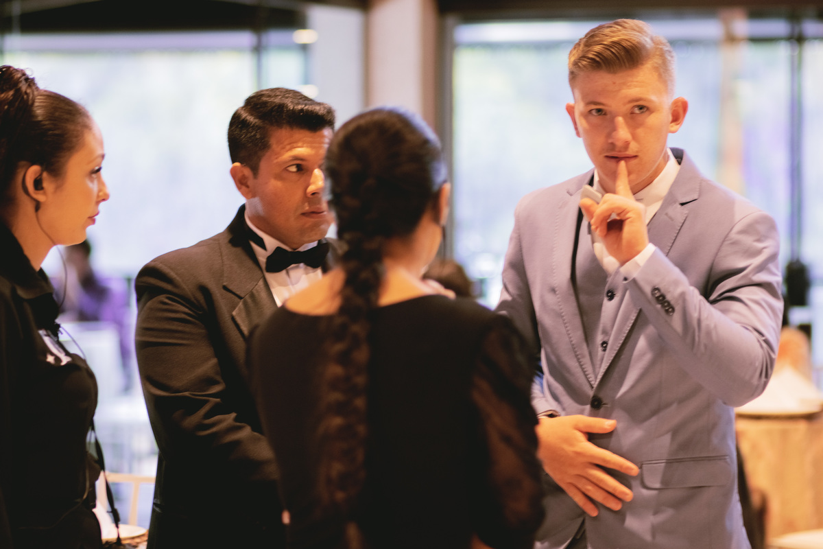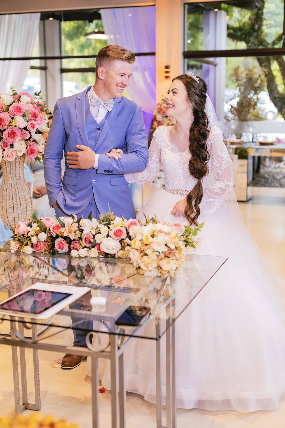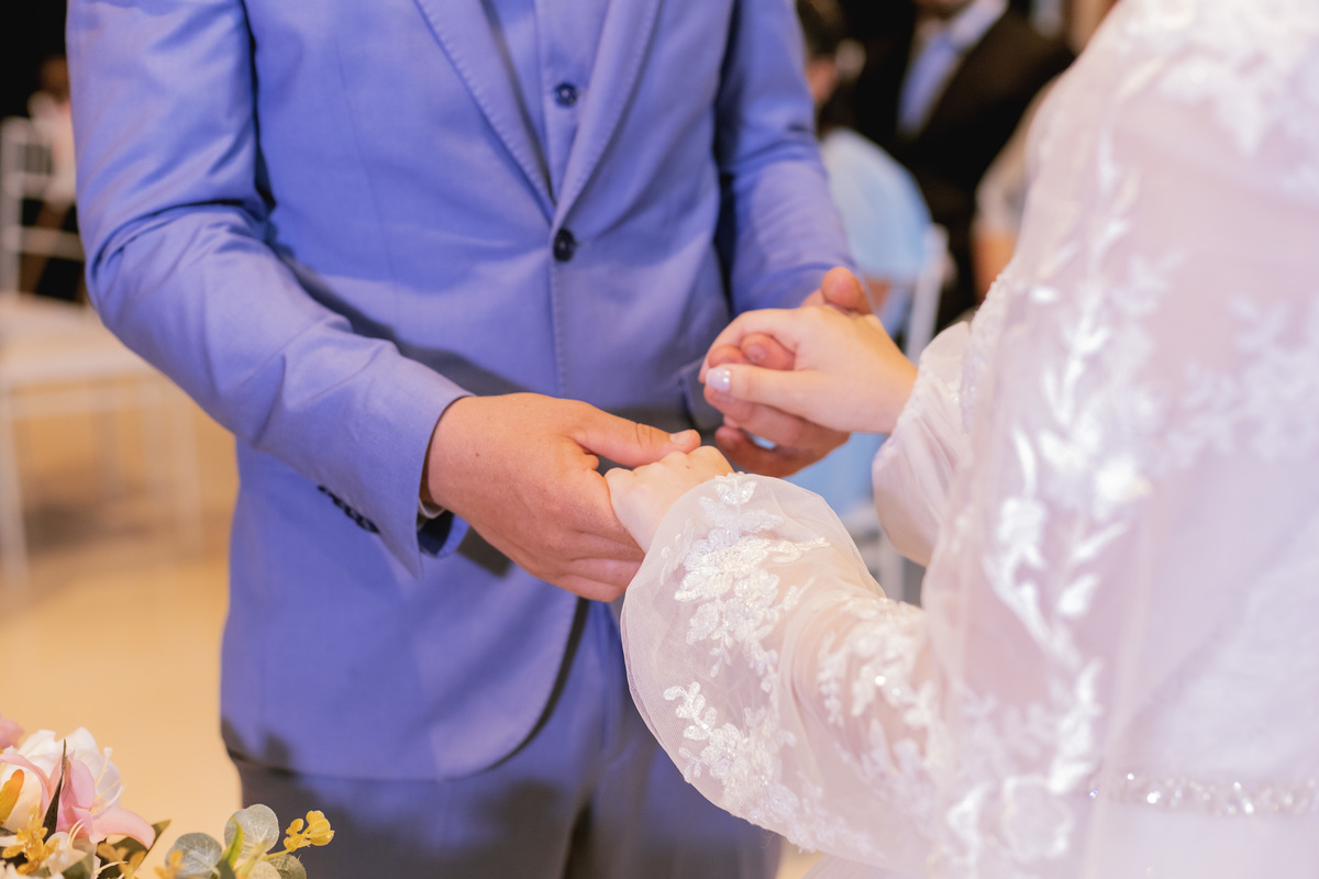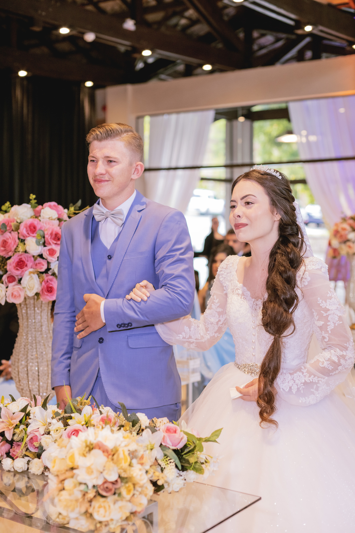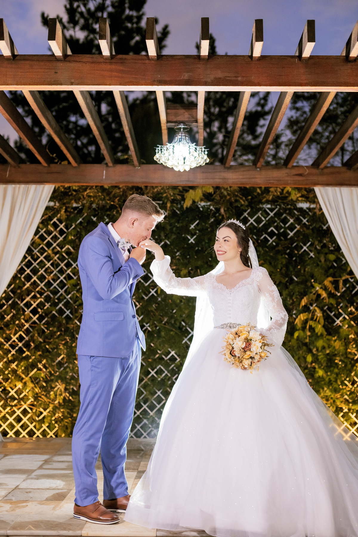 No caminho para o local da cerimônia, começou a chover e a Helô sempre sonhou em se casar ao ar livre. Toda a decoração foi montada no local ao ar livre, porém como não parou mais de chover, em conversa com o noivo juntamente com a equipe de cerimonial, celebrante e fotógrafa foi decidido optar pelo plano B, trazer a decoração para dentro do salão e realizar a cerimônia no interno. Mesmo não saindo tudo 100% como planejado, foi incrível demais. Emocionante a beça!