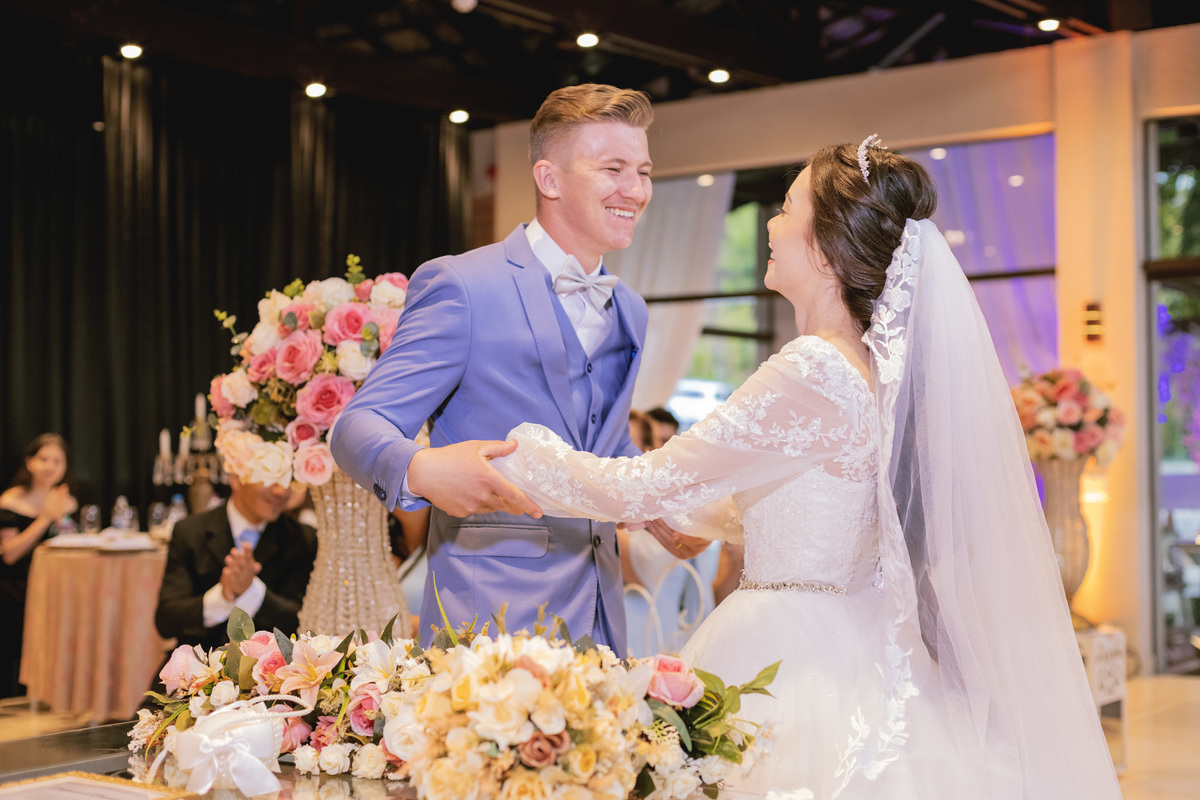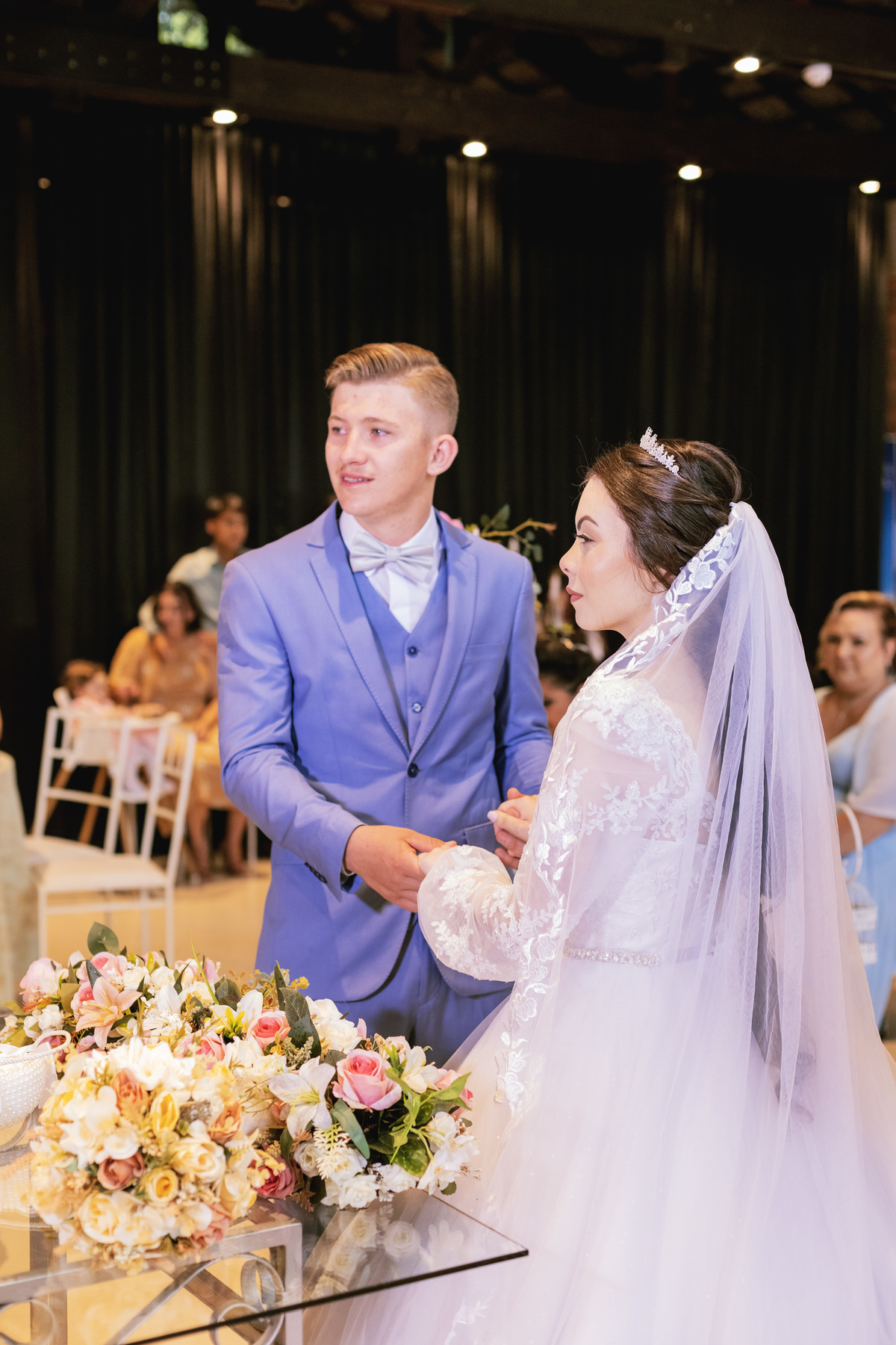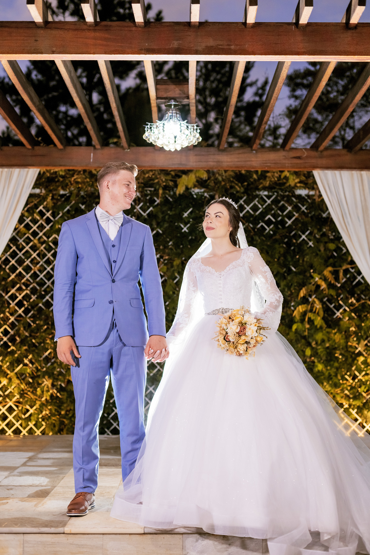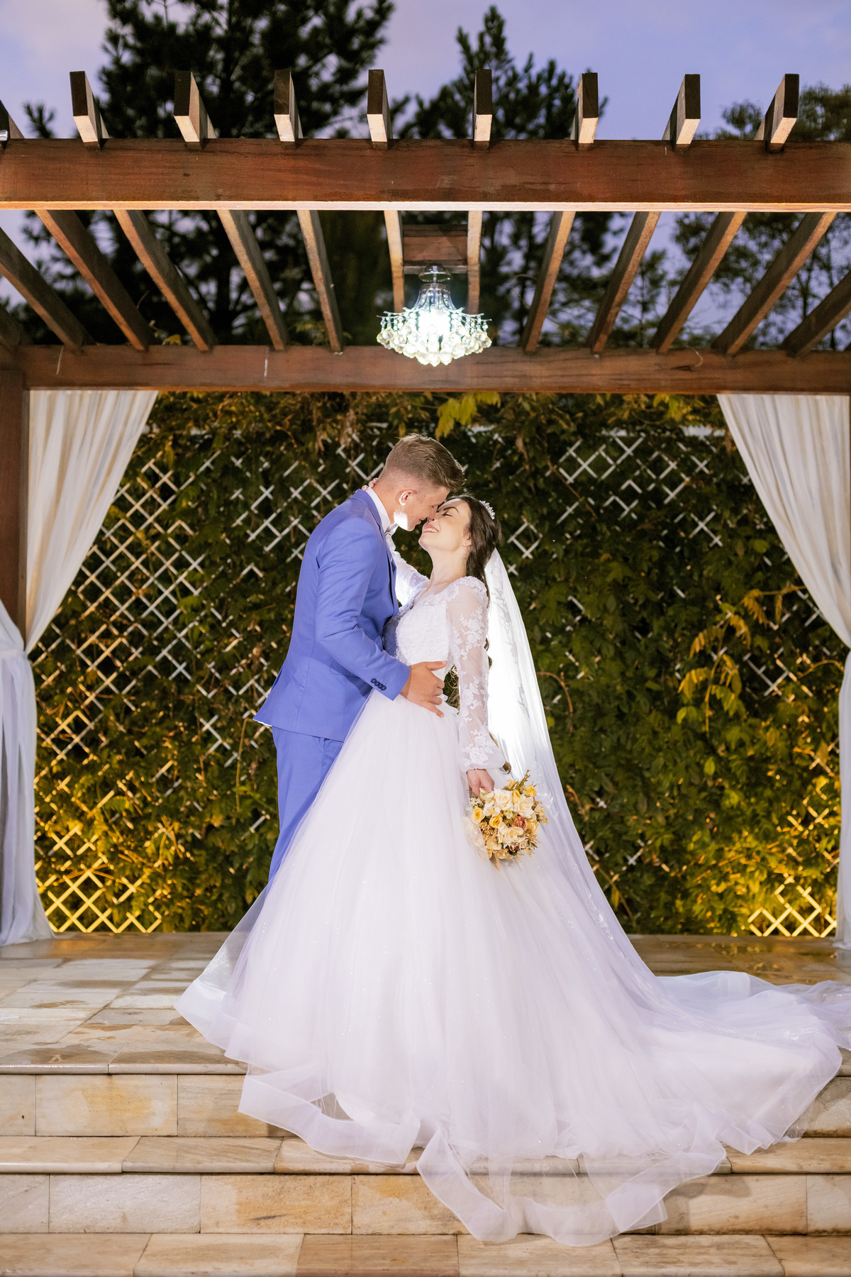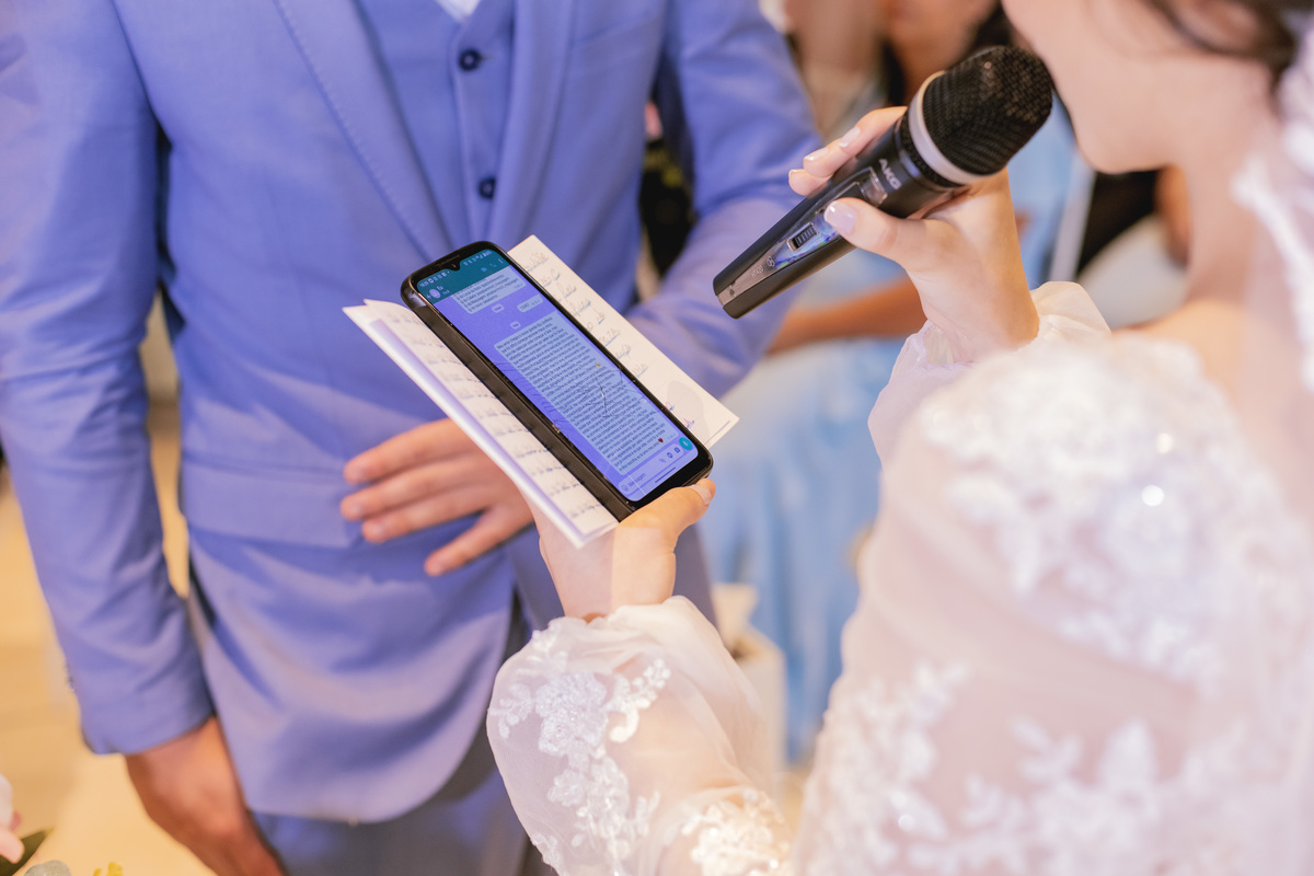 No caminho para o local da cerimônia, começou a chover e a Helô sempre sonhou em se casar ao ar livre. Toda a decoração foi montada no local ao ar livre, porém como não parou mais de chover, em conversa com o noivo juntamente com a equipe de cerimonial, celebrante e fotógrafa foi decidido optar pelo plano B, trazer a decoração para dentro do salão e realizar a cerimônia no interno. Mesmo não saindo tudo 100% como planejado, foi incrível demais. Emocionante a beça!